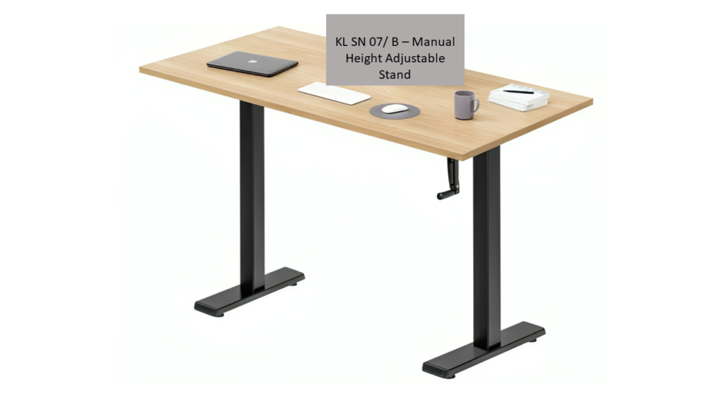The desk has a height adjustment speed of 18mm per turn. This in turn makes the height adjustment very fast and smooth and allows user to adjust from sitting to standing height with minimal efforts and less turns of the hand crank